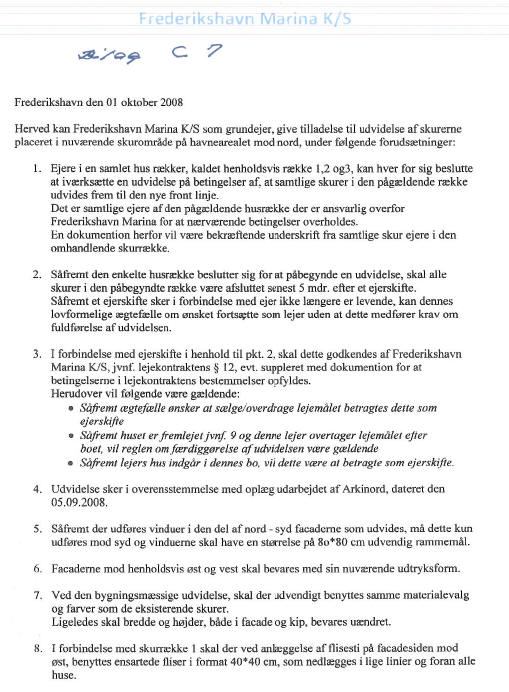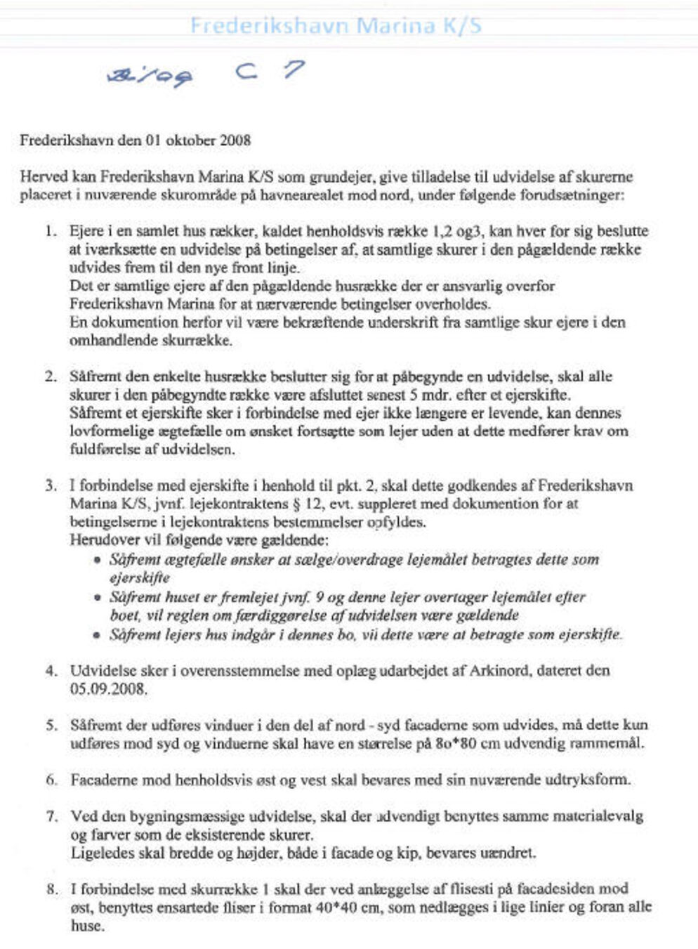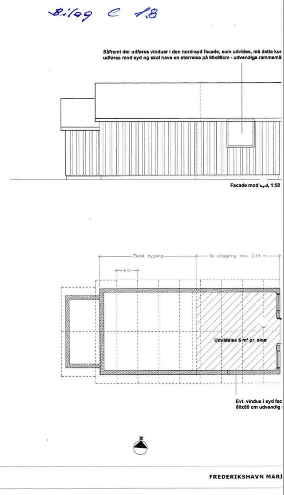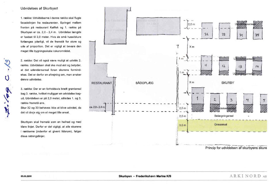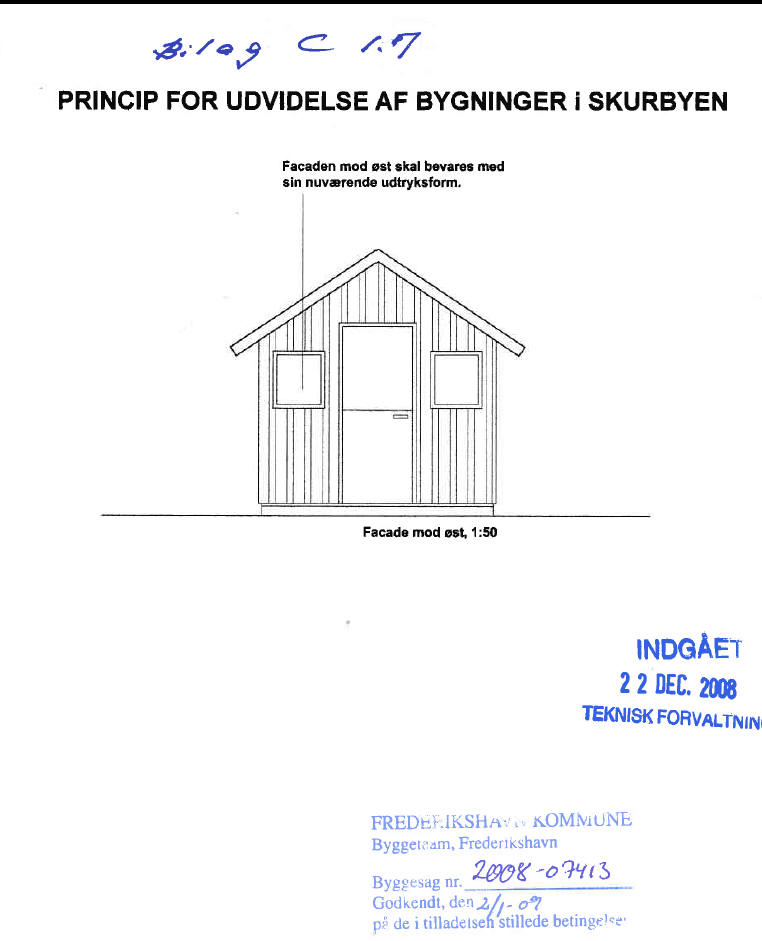 Husene skal placeres og være opført i henhold til de af Frederikshavn Kommune godkendte tegninger, jf. nedenfor.